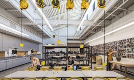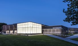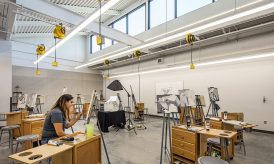 The new 24,600-square-foot Jackson Dinsdale Art Center at Hastings College was inspired by the life of Jackson Dinsdale, a young man passionate about art. The building was designed functionally and materially to represent the three primary art instruction areas of ceramics (brick façade), glassblowing (glass curtain wall), and metalworking (steel). The building includes classrooms, galleries, and studios for glassblowing, metal sculpture, ceramics, drawing, painting, printmaking, and photography as well as an office suite, permanent collection storage, and woodshop.