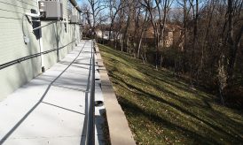 - Retaining walls were constructed behind the 5-plex to help transition the grades and provide an accessible route to the FEMA rated storm shelter beneath. The 3, 4, and 5-plex units are fire sprinkled.