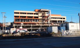 - Steep grade change – the site steps up 3 stories from the north to the south, and the building was designed to step up with it. Engineers used a variety of ways to overcome the lateral earth pressure including the use of a cast-in-place retaining wall using geofoam backfill.